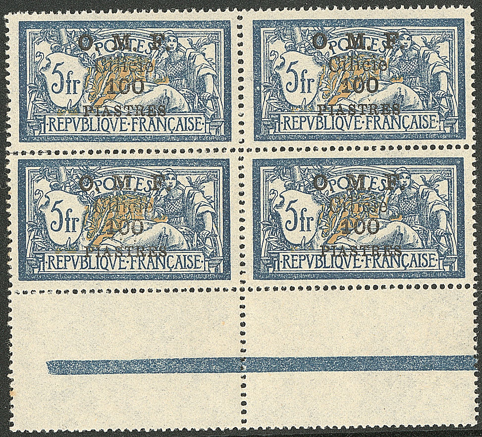 | ** | 1611 | CILICIE. ** Type II. No 97A, bloc de quatre bdf, très frais et bien centré. - TB (cote Yvert) | 4 | 2800€ | 400€ | vendu 473€ | |