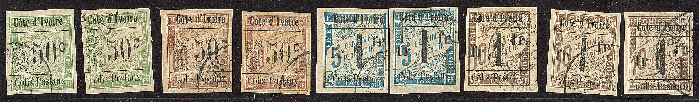| 1658 | COLIS POSTAUX DE COTE D'IVOIRE.Nos 5, 5d, 6, 6d, 7, 7a, 8, 8A, 8b. - TB (cote Yvert) | 9 | 469€ | 70€ | - | ||