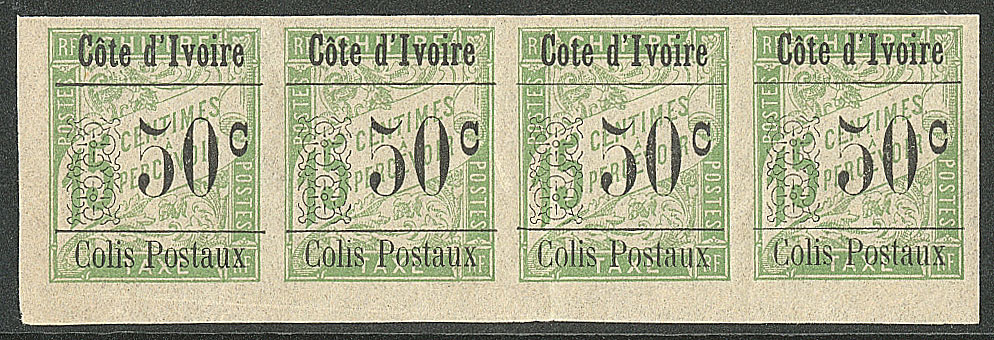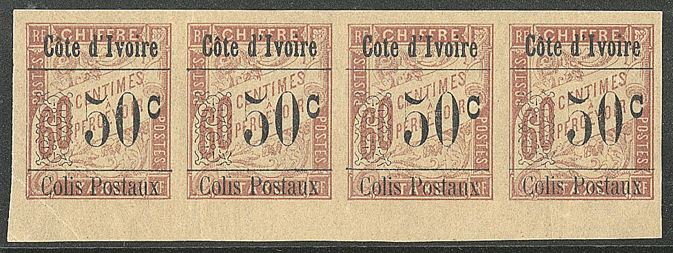 | ** | 1663 | COLIS POSTAUX DE COTE D'IVOIRE. ** Sans accent sur le "o". No 6da, TAN dans une bande de quatre bdf. - TB (cote Yvert) | 4 | 700€ | 100€ | - | |