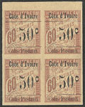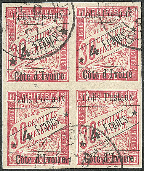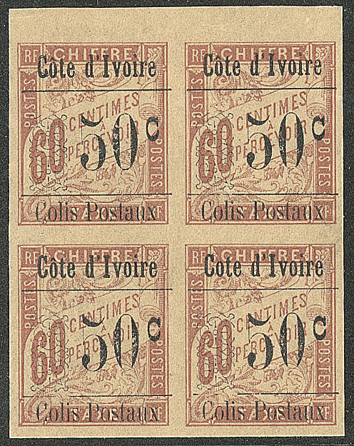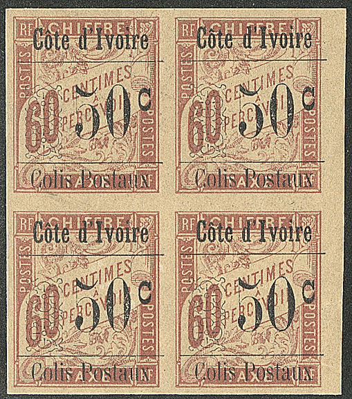 | ** | 1664 | COLIS POSTAUX DE COTE D'IVOIRE. ** Sans accent sur le "o". No 6da, TAN dans un bloc de quatre bdf. - TB (cote Yvert) | 4 | 720€ | 100€ | - | |