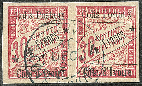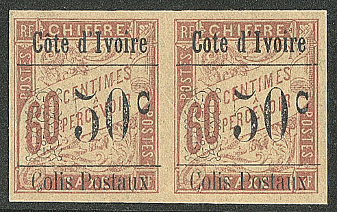 | 1678 | COLIS POSTAUX DE COTE D'IVOIRE.Sans accent sur le "o". Nos 11a + 11, paire. - TB (cote Yvert) | 2 | 640€ | 120€ | - | ||