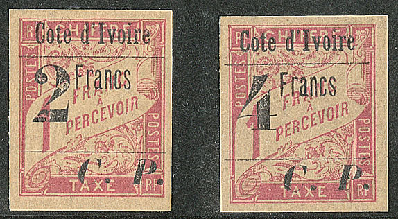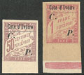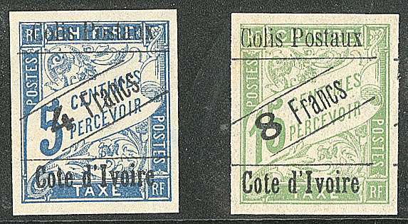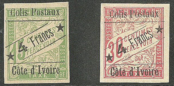 | * | 1686 | COLIS POSTAUX DE COTE D'IVOIRE. * Nos 18 bdf, 19 bdf. - TB (cote Yvert) | 2 | 280€ | 40€ | - | |
