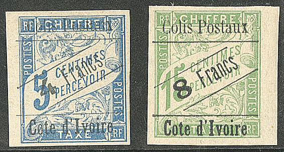 | * | 1685 | COLIS POSTAUX DE COTE D'IVOIRE. * Nos 18 bdf, 20. - TB (cote Yvert) | 2 | 520€ | 100€ | - | |