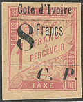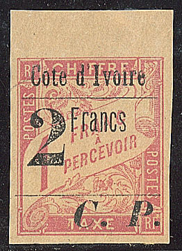| * | 1656 | COLIS POSTAUX DE COTE D'IVOIRE. * Sans "Côte d'Ivoire". No 4B, bdf. - TB. - TB. - R (tirage 75) (cote Yvert) | 1 | 4500€ | 800€ | vendu 800€ | |