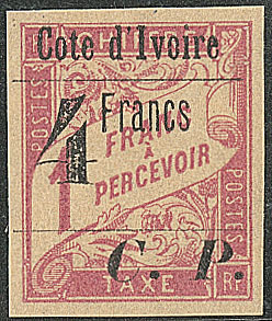 | * | 1690 | COLIS POSTAUX DE COTE D'IVOIRE. * Chiffre "4" incliné. No 21a, très frais. - TB. - R (tirage 40) (cote Yvert) | 1 | 2500€ | 500€ | - | |