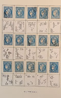 | 1372 | COLLECTIONS DE FRANCE. Oblitérations de Paris. 1851-1863, obl losanges bâtons et romaines, sur Empire et couleurs diverses, nombreux fragments et 6 plis, en 1 album, tous états (cote Yvert) | - | - | 200€ | vendu 429€ | ||