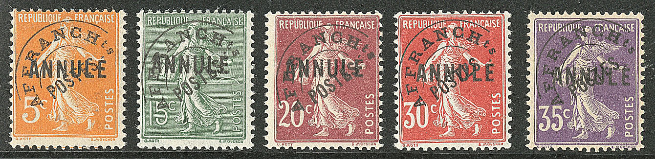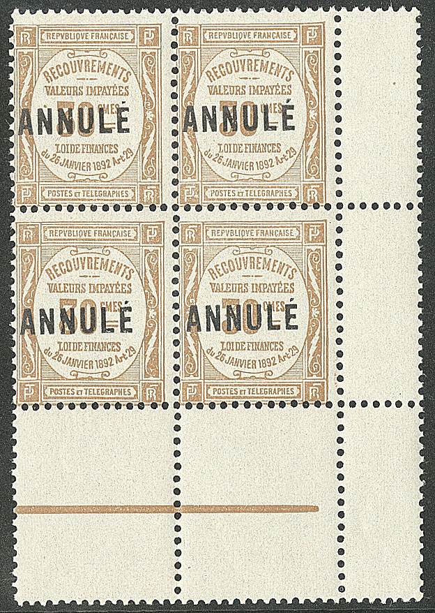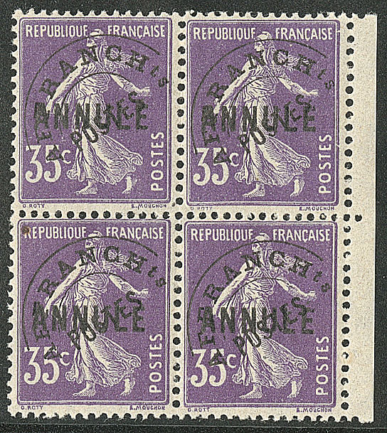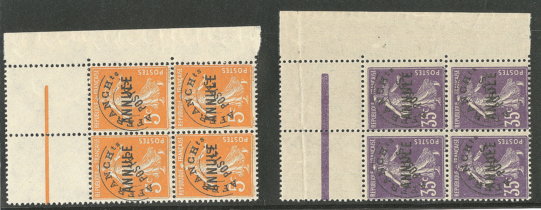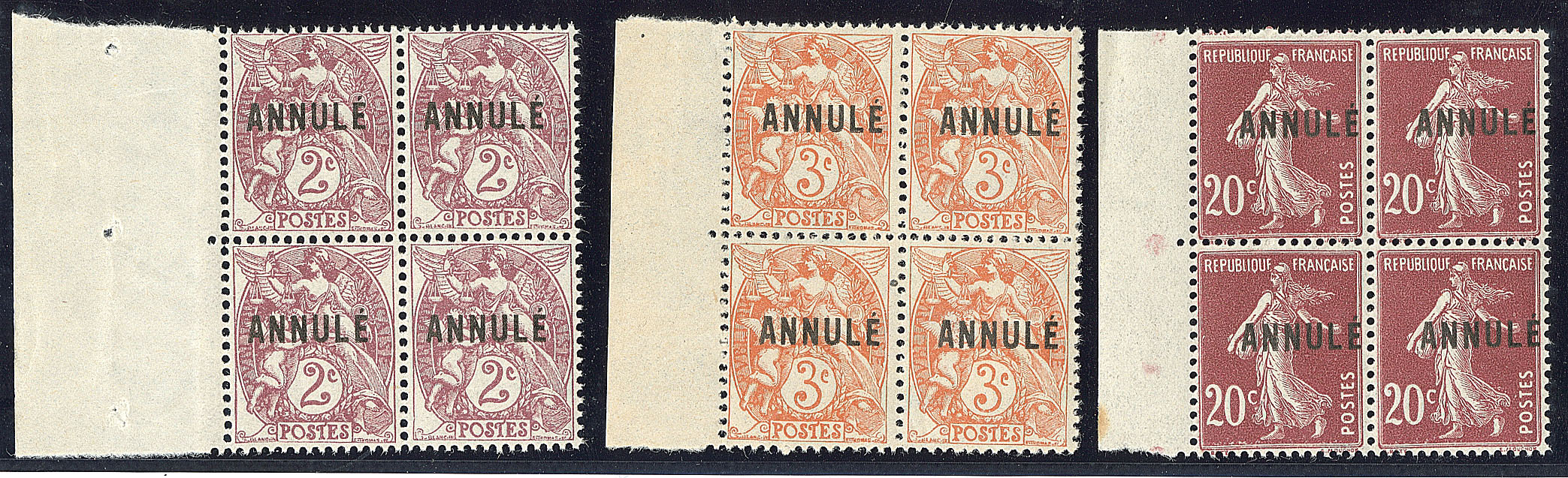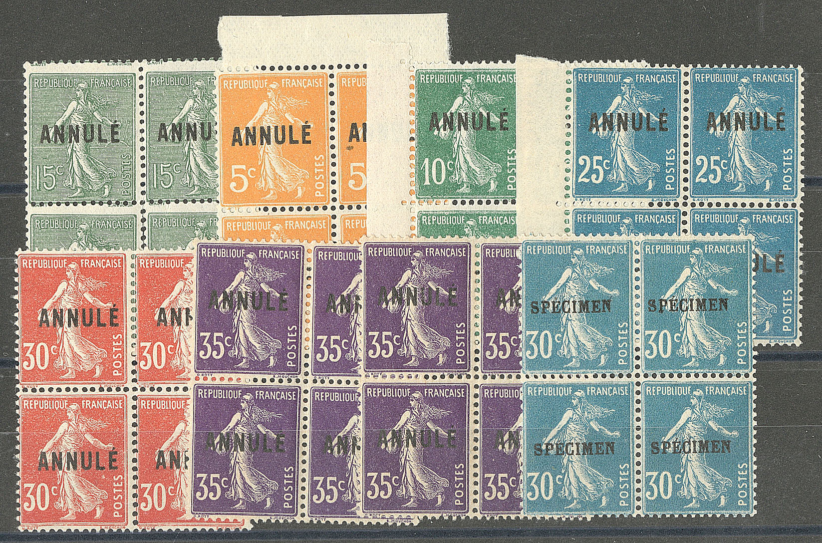 | ** | 1156 | COURS D'INSTRUCTION. ** Annulé. Nos 36, 38, 39, 41 à 43 (2), 76, tous en bloc de quatre. - TB (N°et cote SM ) | 32 | 1080€ | 100€ | vendu 110€ | |