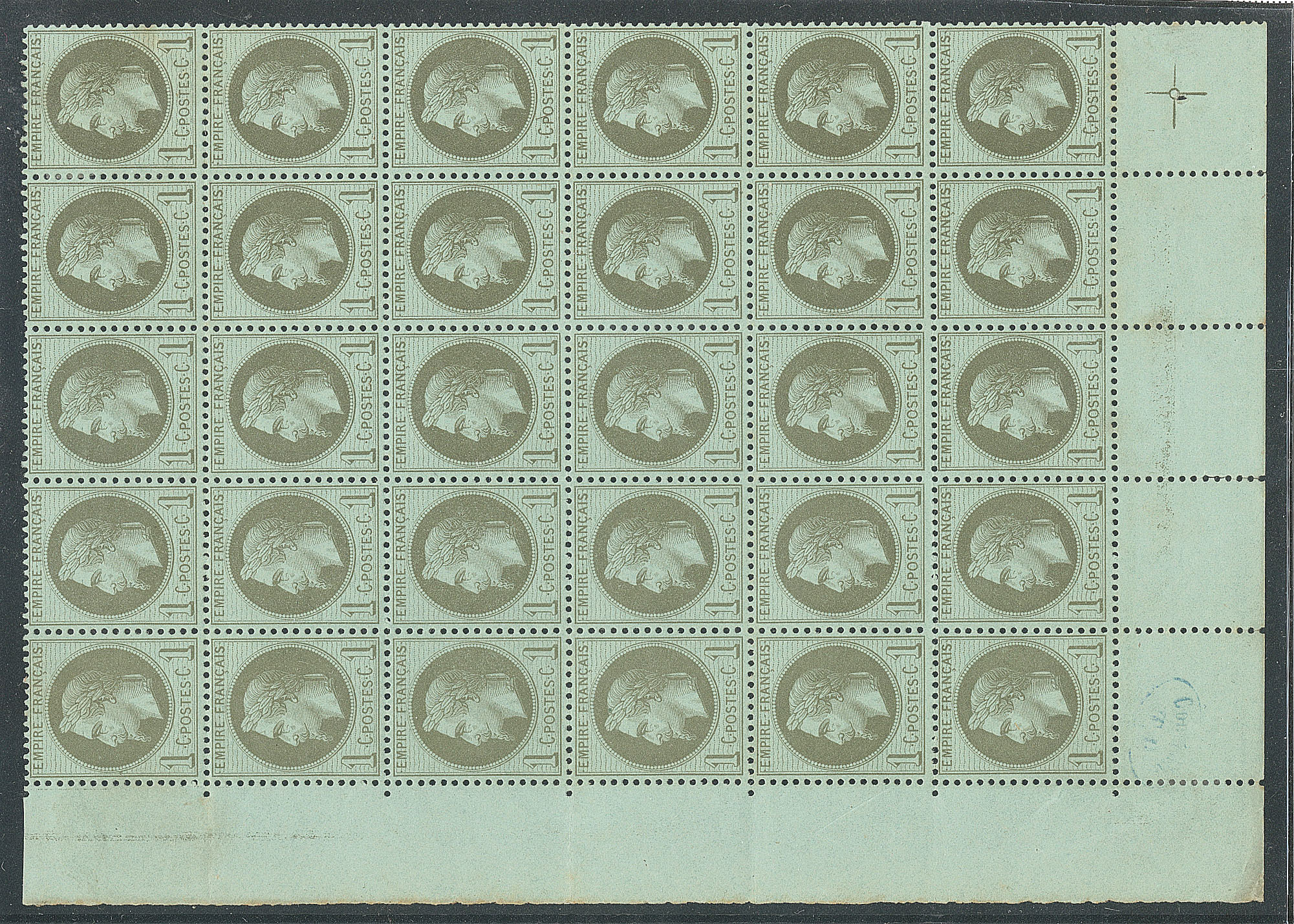 ** 259 EMPIRE LAURE. ** No 25, vert bronze, panneau de 30 ex cdf, bon centrage de l'ensemble, 8 ex * ou adhérences. - TB (cote Yvert) 30 2820€ 300€ vendu