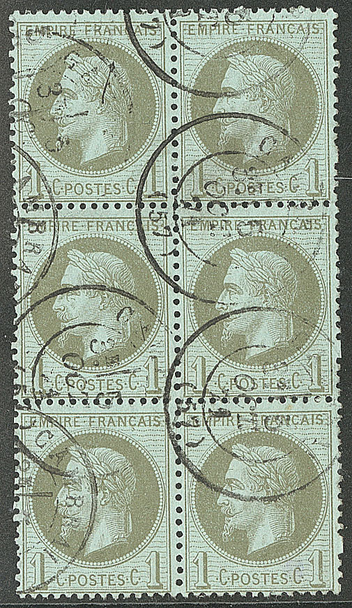 262 EMPIRE LAURE.No 25a, bloc de six obl cad Cambrai. - TB (cote Yvert) 6 250€ 60€ vendu