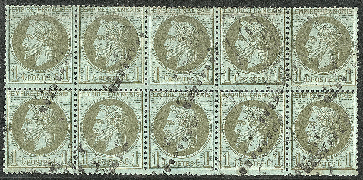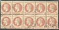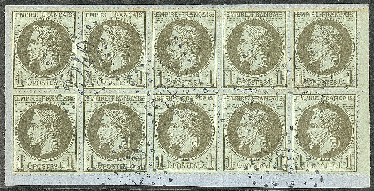 264 EMPIRE LAURE.No 25a, bloc de dix petit bdf, obl gc 2240 sur support. - TB 10 - 100€ vendu