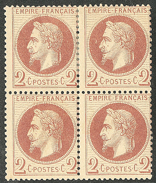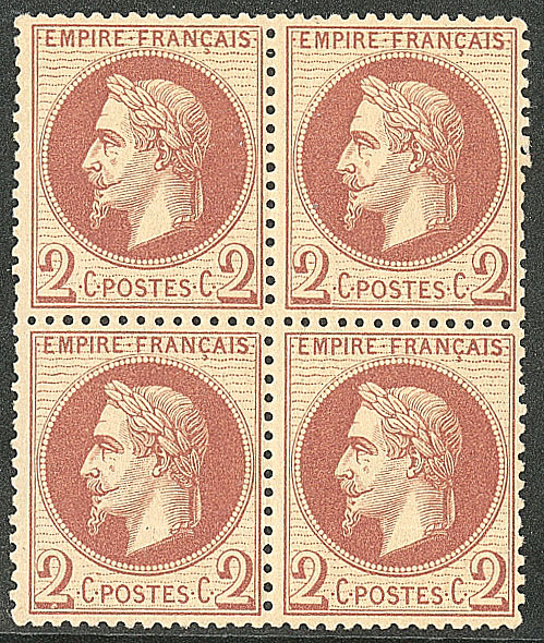 ** 268 EMPIRE LAURE. ** No 26B, rouge brun type II, bloc de quatre (un ex *), très frais. - TB (cote Yvert) 4 950€ 200€ vendu