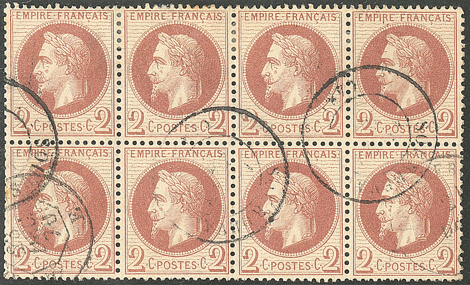 270 EMPIRE LAURE.No 26B, bloc de huit obl cad. - TB (cote Yvert) 8 1000€ 200€ vendu