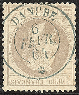 272 EMPIRE LAURE.Poste maritime. No 27A, gris type I, obl cad bleu "Danube *" fév 64, ex choisi. - TB 1 - 100€ vendu