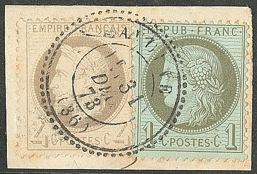 274 EMPIRE LAURE.Nos 27A + 50, obl cad 24 de Bayonne, 31 déc 73, sur support. - TB 2 - 100€ vendu