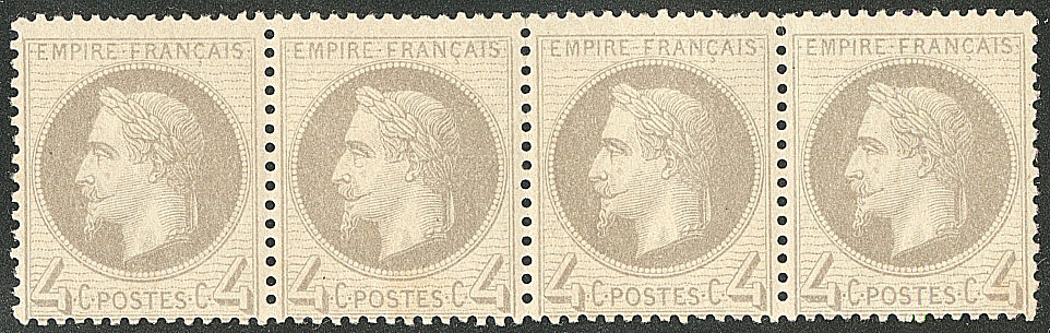 ** 276 EMPIRE LAURE. ** No 27B, gris type II, bande de quatre dont deux ex *, très frais. - TB (cote Yvert) 4 1400€ 150€ vendu