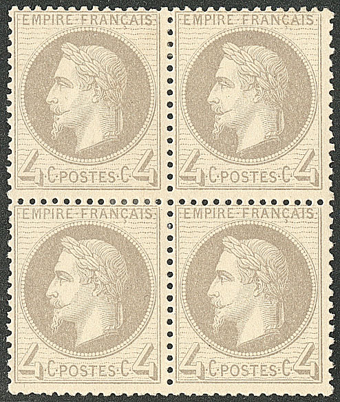 * 326 EMPIRE LAURE. * Rothschild. No 31c, bloc de quatre bdf (un ex **), très frais. - TB (cote Yvert) 4 1480€ 200€ -