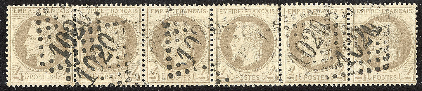 280 EMPIRE LAURE.No 27Bb, gris jaunâtre, bande de six obl gc 1020 de Chôlet. - TB 6 - 100€ -