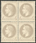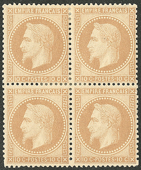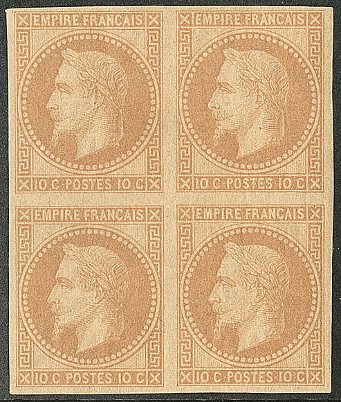* 324 EMPIRE LAURE. * Rothschild. No 28Aa, bistre type I, bloc de quatre, très frais. - TB (cote Yvert) 4 1200€ 180€ -