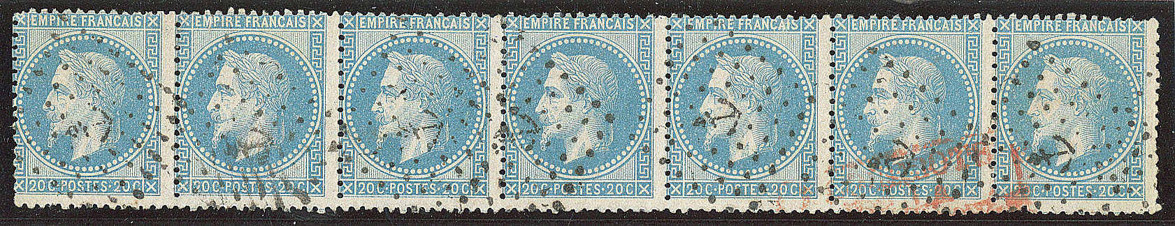 288 EMPIRE LAURE.Obl ancre. No 29B, bleu type II, bande de sept (4 ex pd). - TB 7 - 90€ -