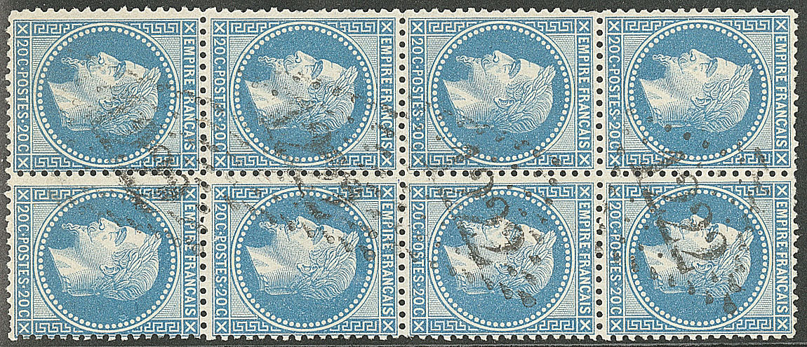 289 EMPIRE LAURE.No 29Ba, bleu foncé, bloc de huit, obl gc 1222 de Crest. - TB 8 - 50€ vendu