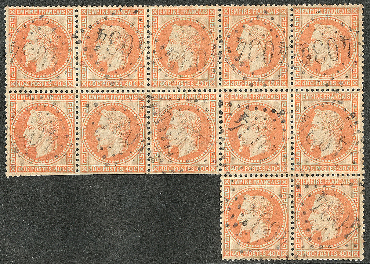 301 EMPIRE LAURE.No 31, bloc de douze en équerre (2 ex pli et 3 ex def), obl gc 4034 de Troyes. - TB 12 - 100€ vendu