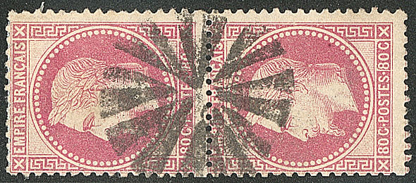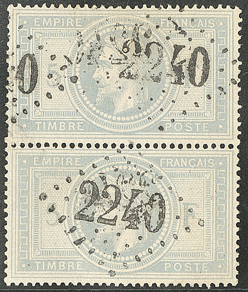 311 EMPIRE LAURE.No 33a, paire verticale (un ex deux dents courtes), obl gc 2240. - TB (cote Yvert) 2 2800€ 350€ vendu