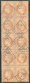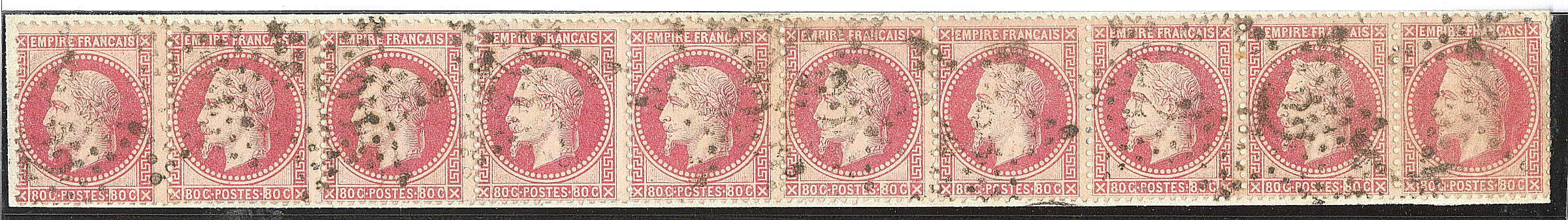 304 EMPIRE LAURE.No 32, bande de dix obl étoile 22, sur support. - TB 10 - 250€ vendu