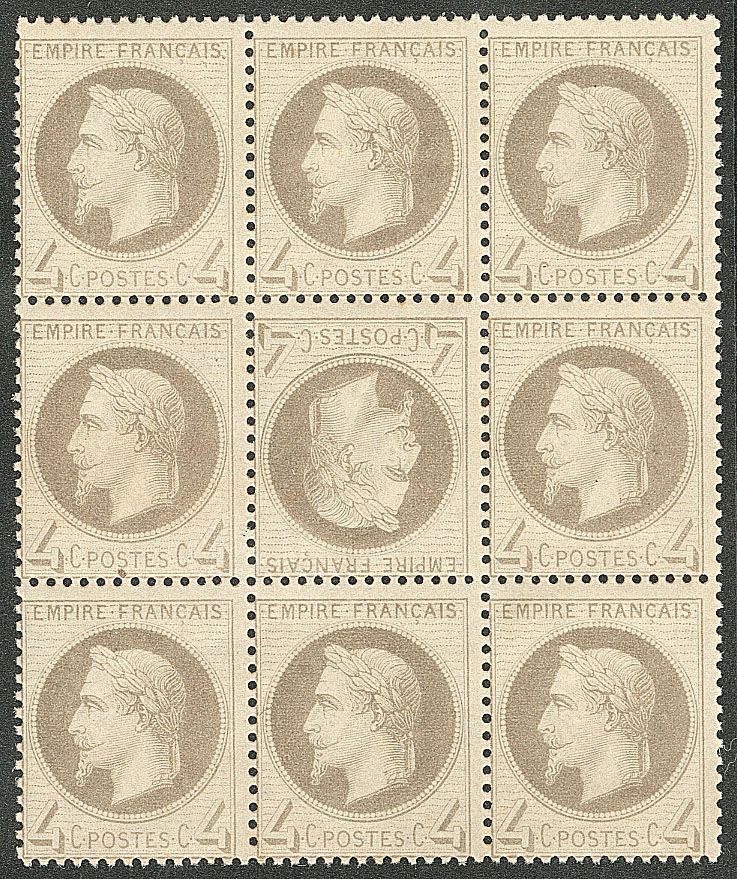 ** 319 EMPIRE LAURE. ** Tête-bêche. No 27B, gris type II, au centre d'un bloc de neuf (case 25), pièce superbe et rarissime (cote Yvert)