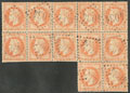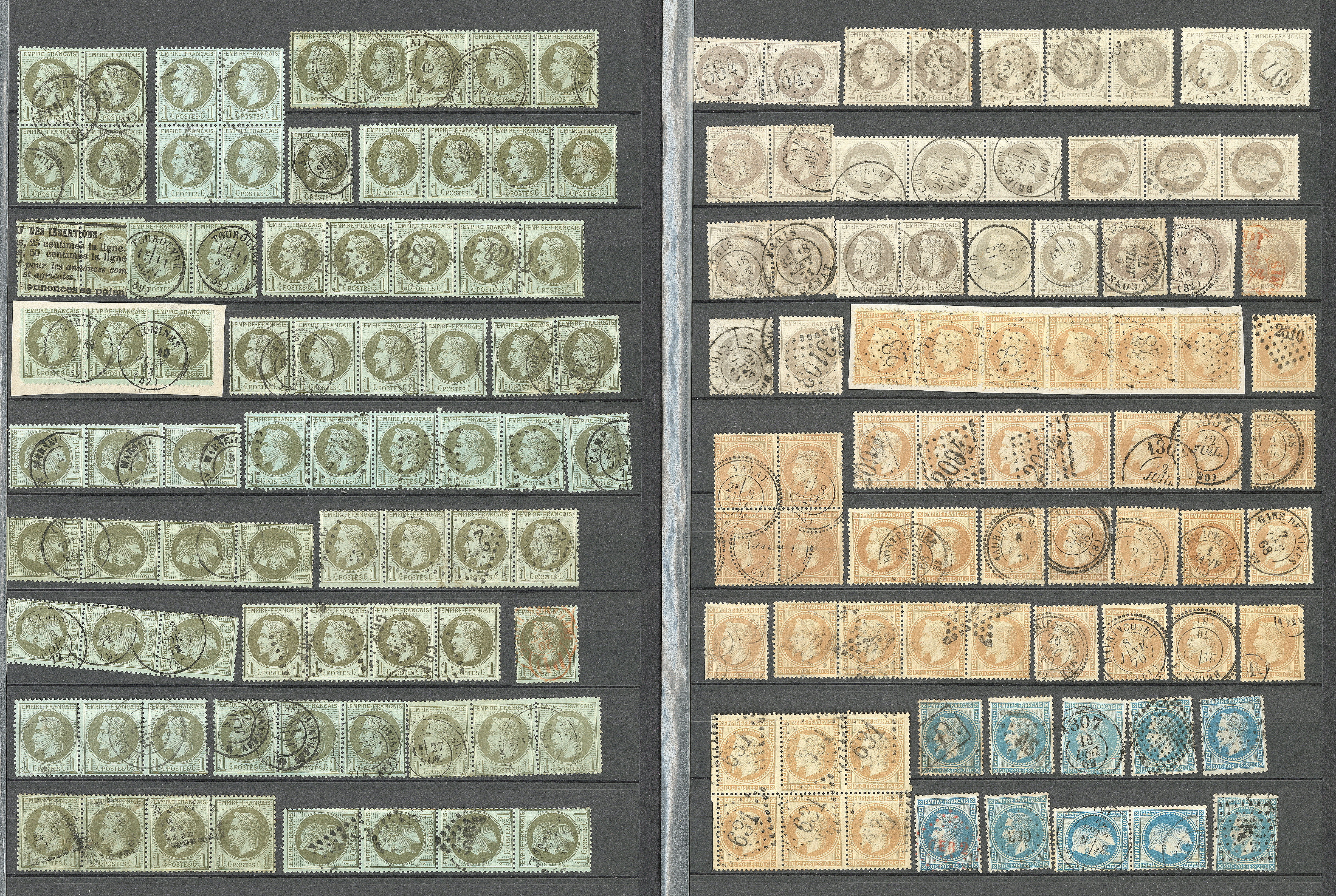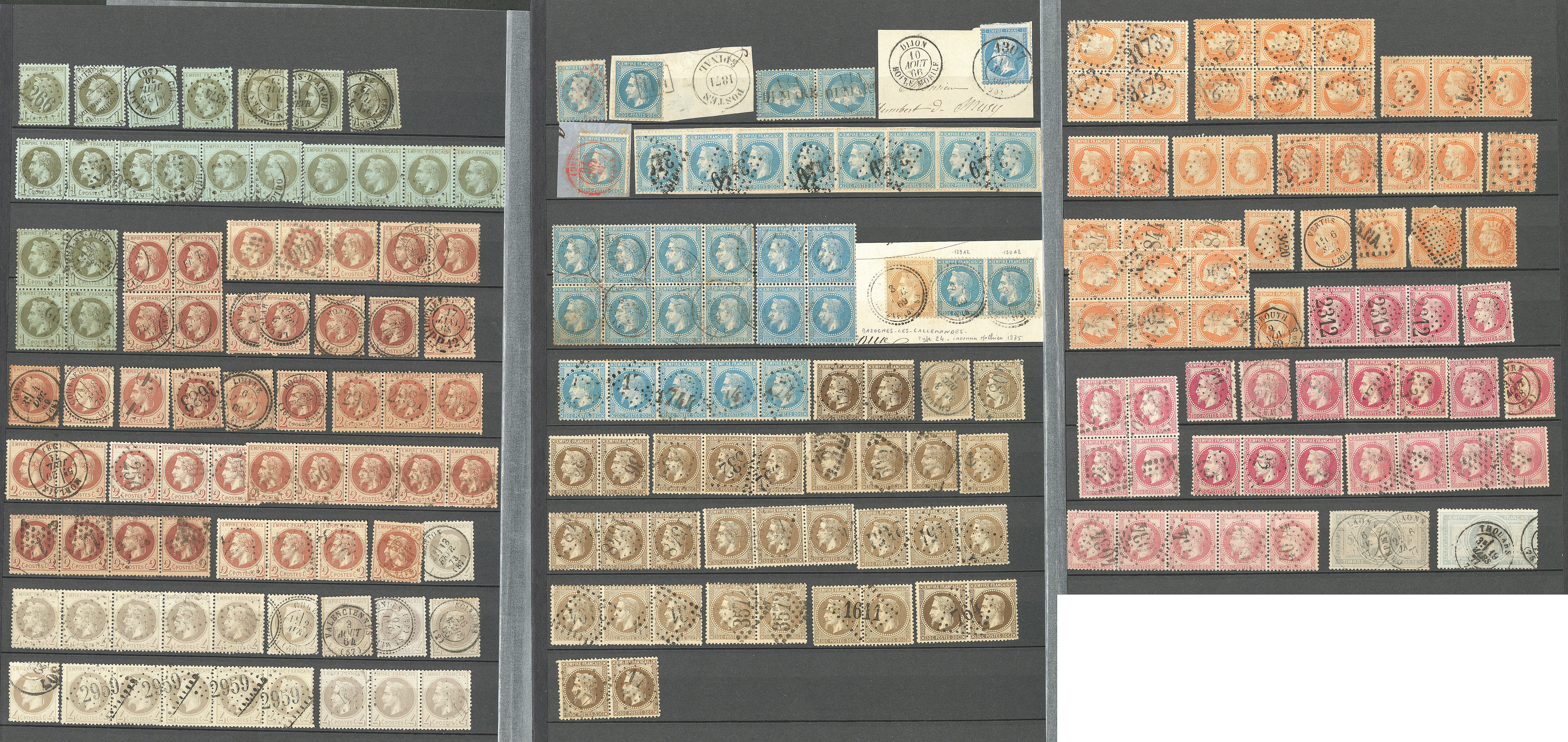 329 EMPIRE LAURE.Lot. 1862-1870, nombreuses paires, bandes et blocs, majorité obl choisies. - TB, B ou pd (cote Yvert)