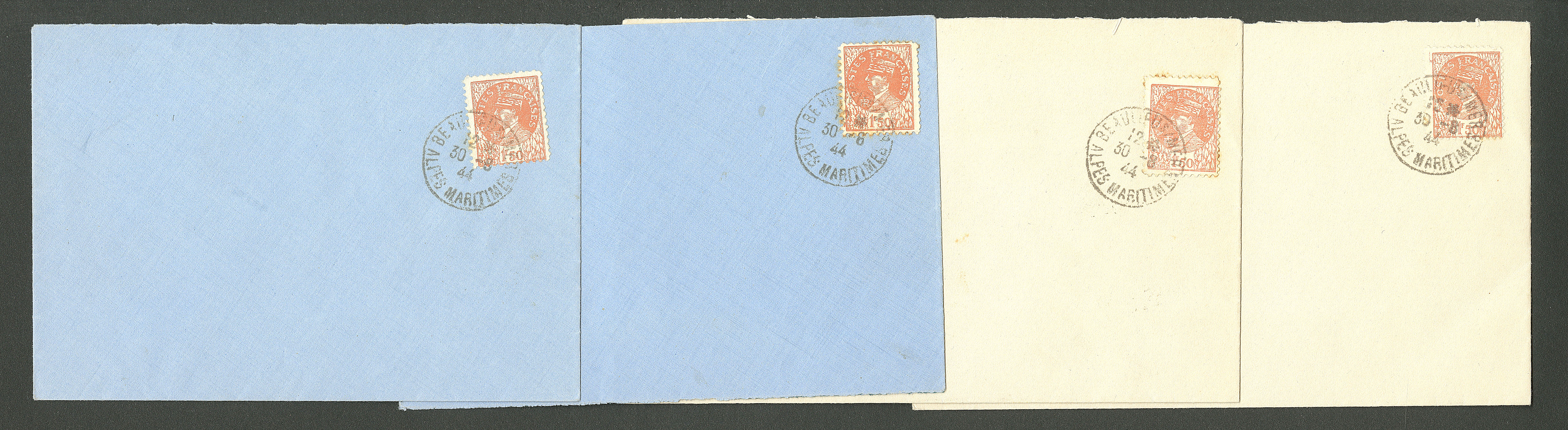 1189 | LIBERATION. Lettre.De Gaulle. Emission de Nice. No 1, 4 ex sur 4 enveloppes obl Beaulieu 30.8.44, non voyagé. - TB | 4 | - | 250€ | - | |
