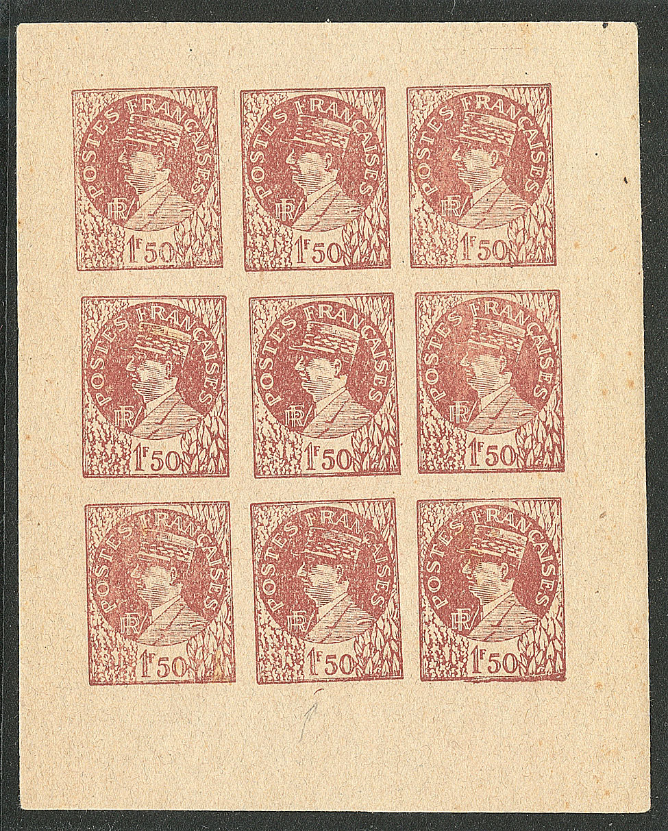 | (*) | 1190 | LIBERATION. (*) De Gaulle. Emission de Nice. Non dentelés. No 3, bloc de neuf encadré. - TB (cote Mayer ) | 9 | 1150€ | 150€ | - | |