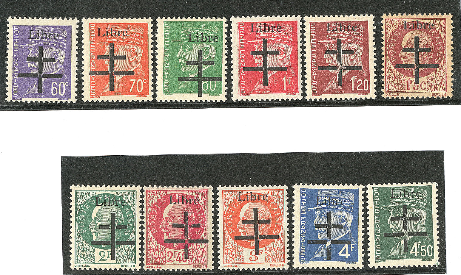 | * | 1195 | LIBERATION. * Aigurande. Nos 1 à 11, quasiment **. - TB (cote Mayer ) | 11 | 675€ | 100€ | - | |