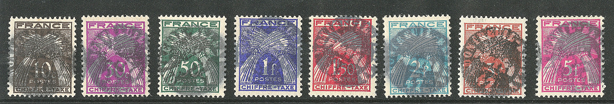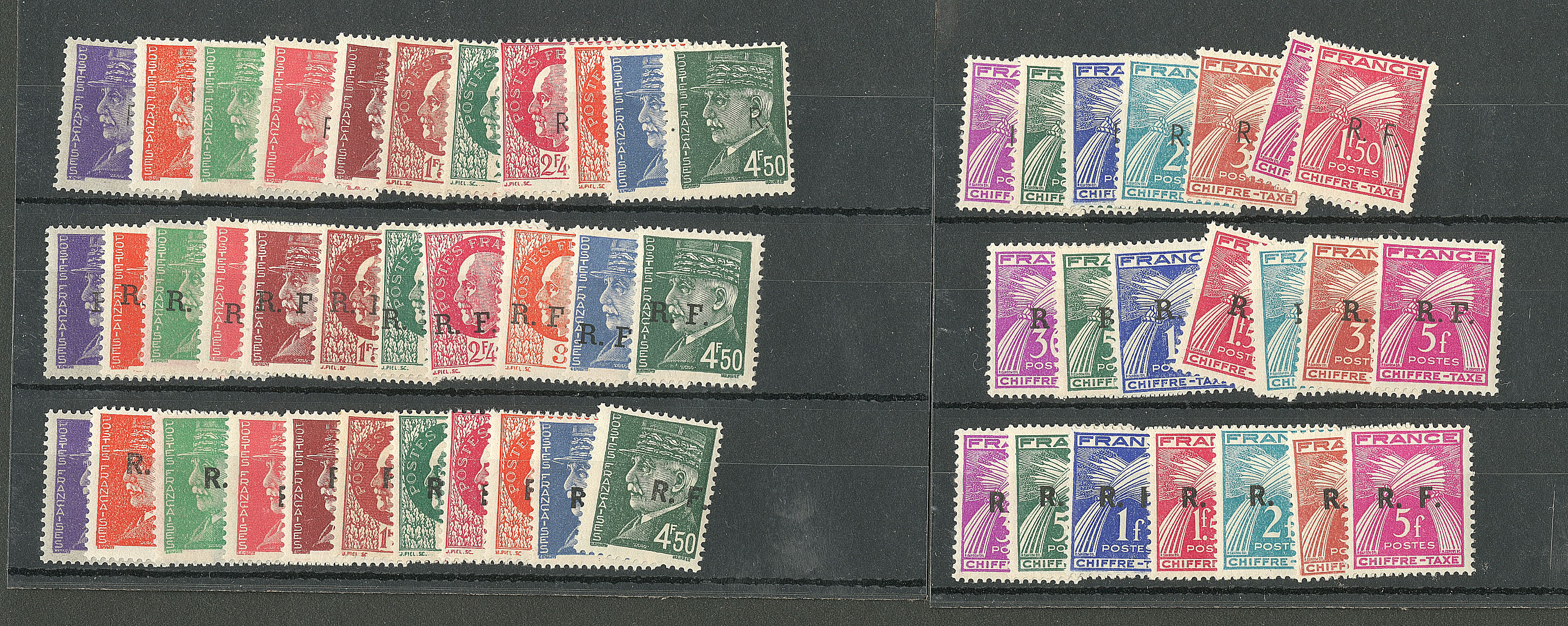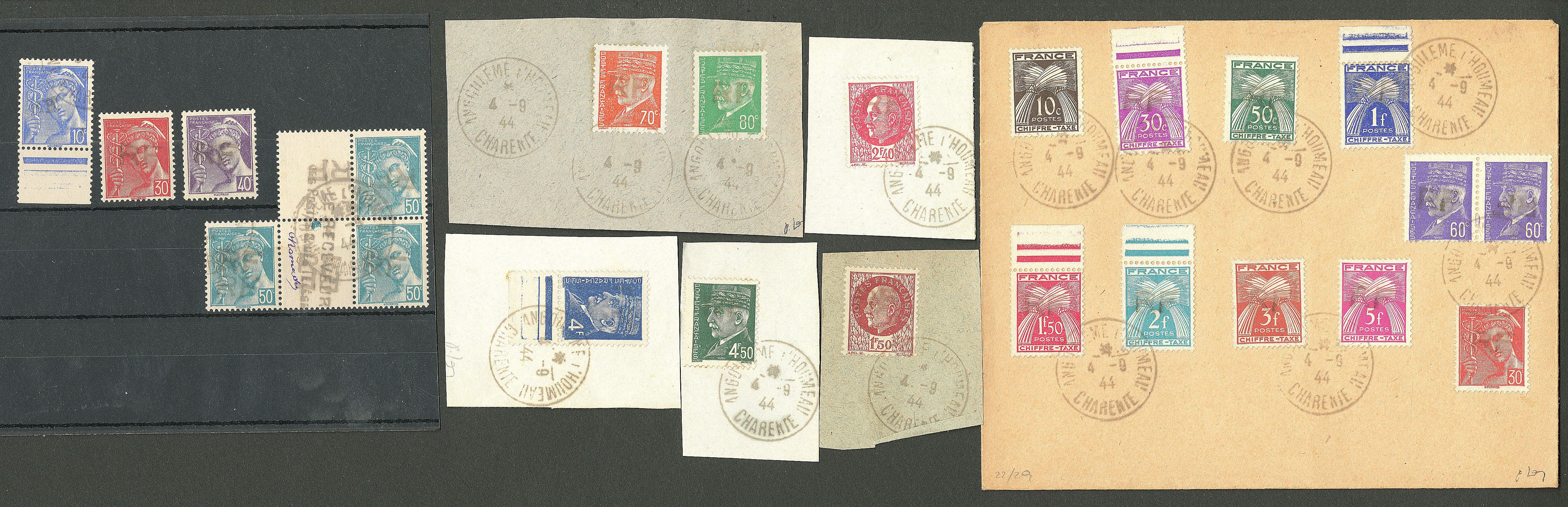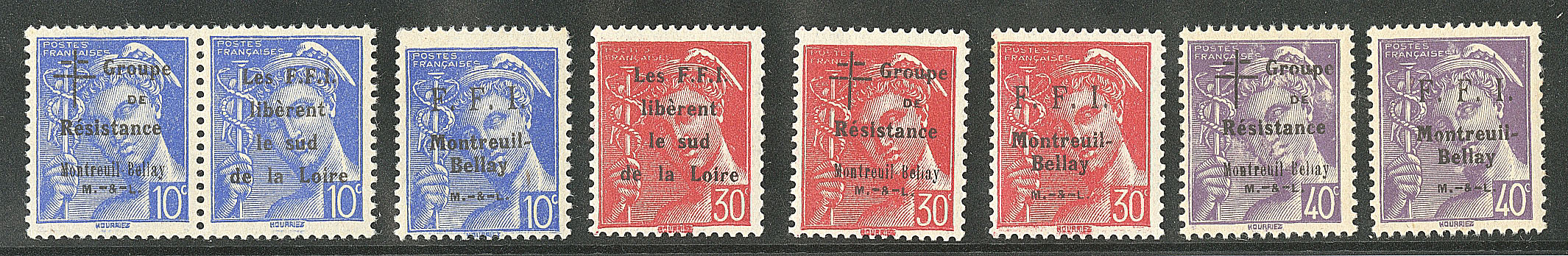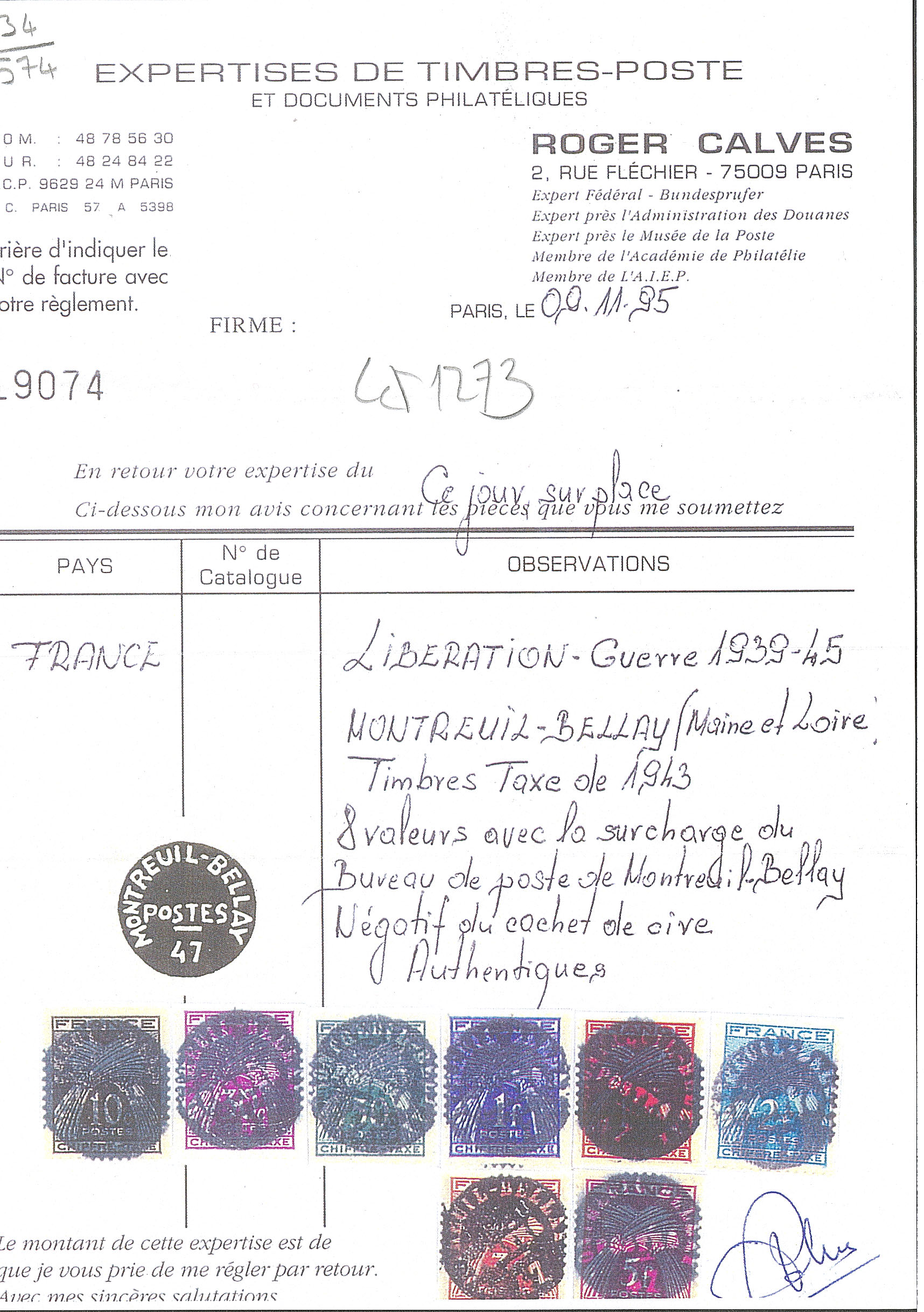 | ** | 1273 | LIBERATION. ** Montreuil Bellay. Surcharge négative du cachet de cire. Taxe. Nos 1 à 8. - TB (cote Mayer ) | 8 | 1500€ | 300€ | - | |