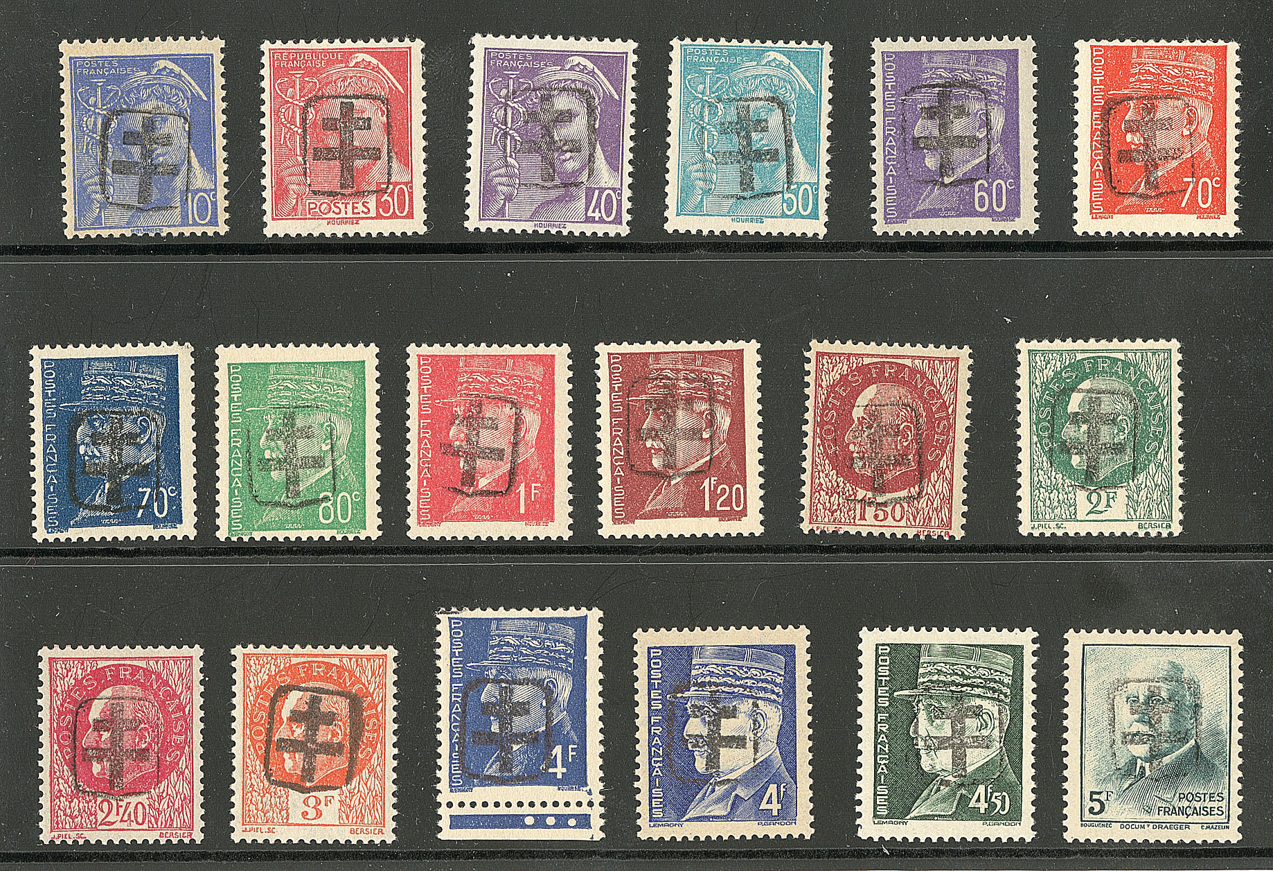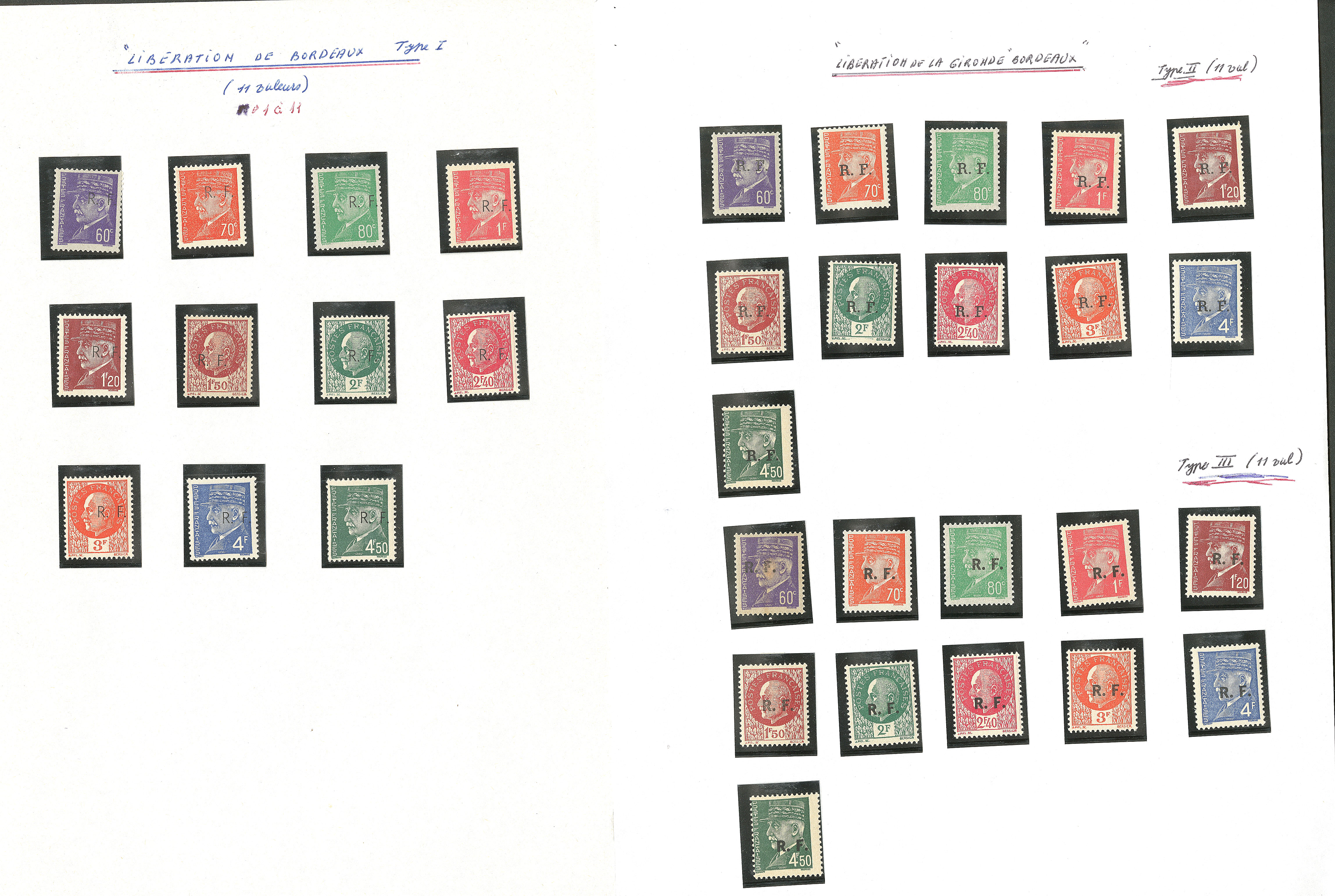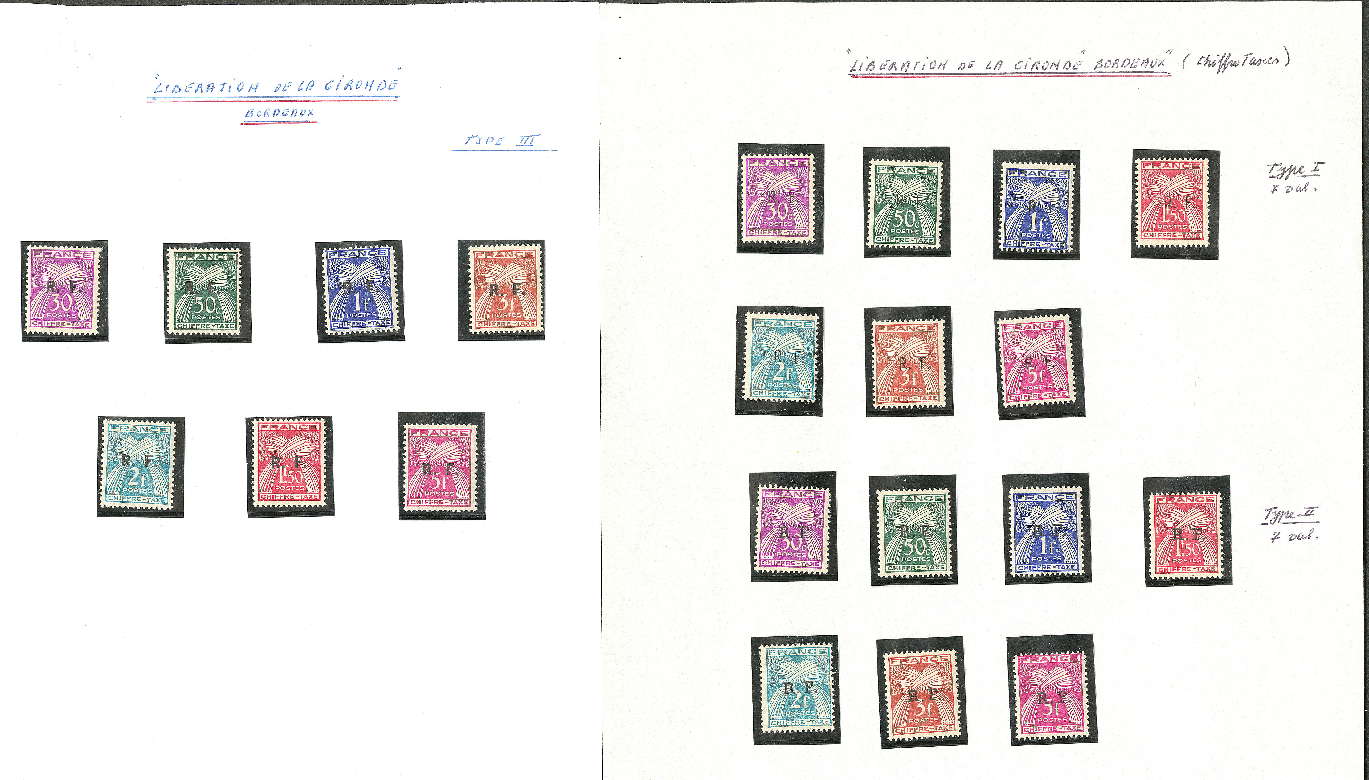 | ** | 1226 | LIBERATION. ** Bordeaux. Double surcharge. Nos 16a types I, II et III, 17a type III, surcharge renversée 6b* type I. - TB (cote Mayer) | 5 | 2380€ | 250€ | - | |