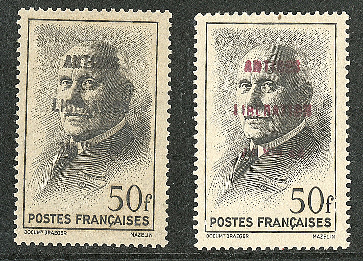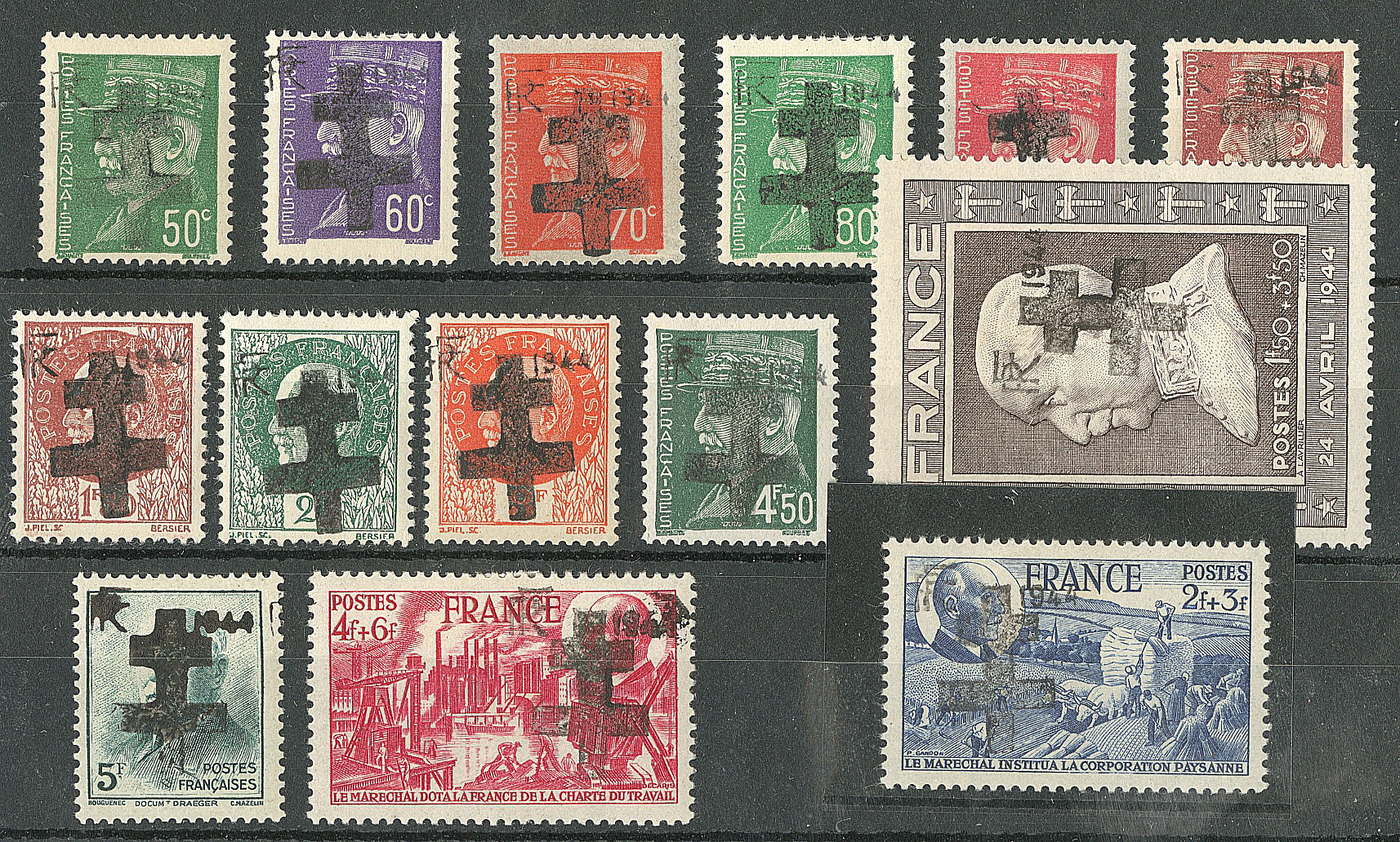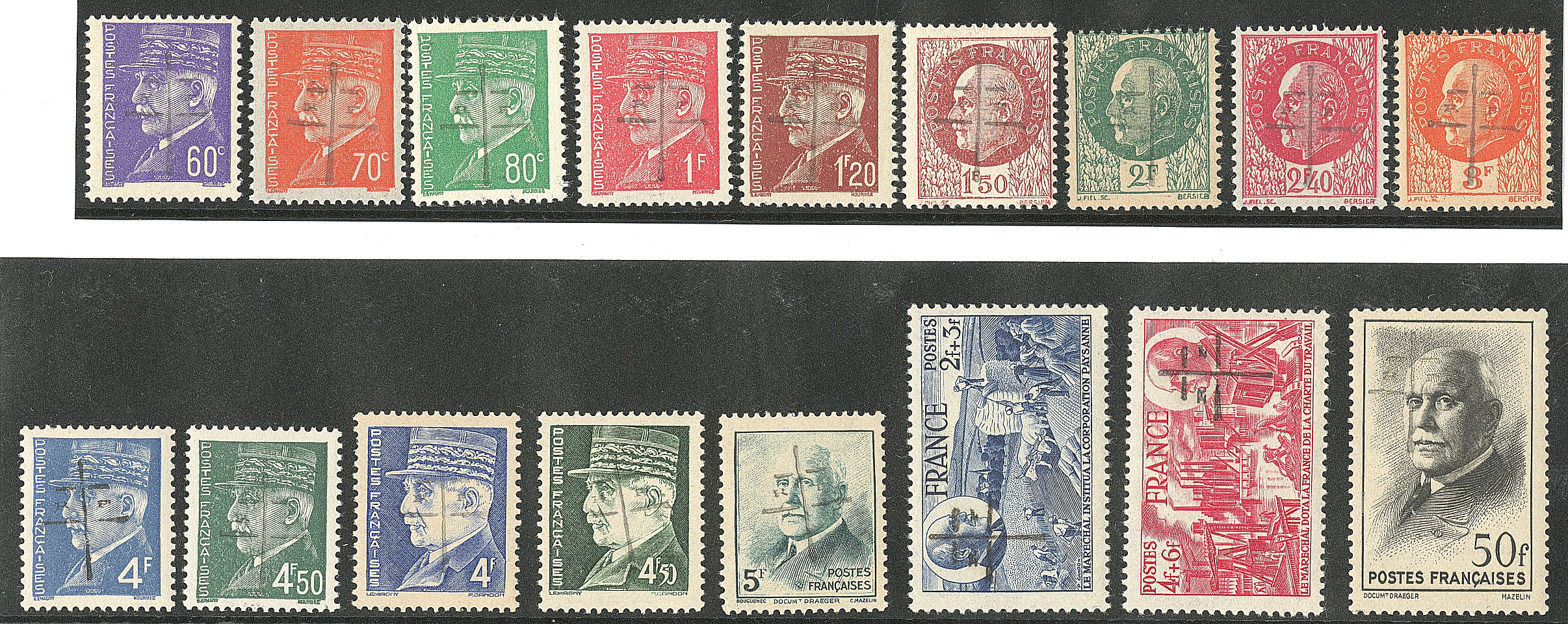 | ** | 1226 | LIBERATION. ** Bordeaux. Double surcharge. Nos 16a types I, II et III, 17a type III, surcharge renversée 6b* type I. - TB (cote Mayer) | 5 | 2380€ | 250€ | - | |