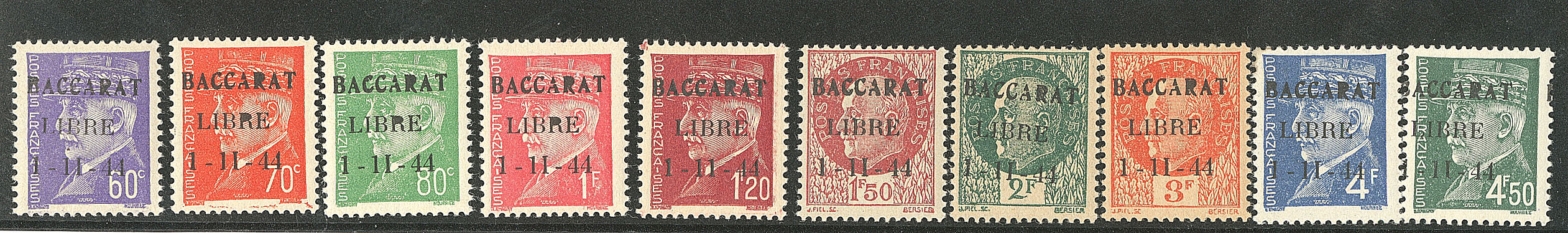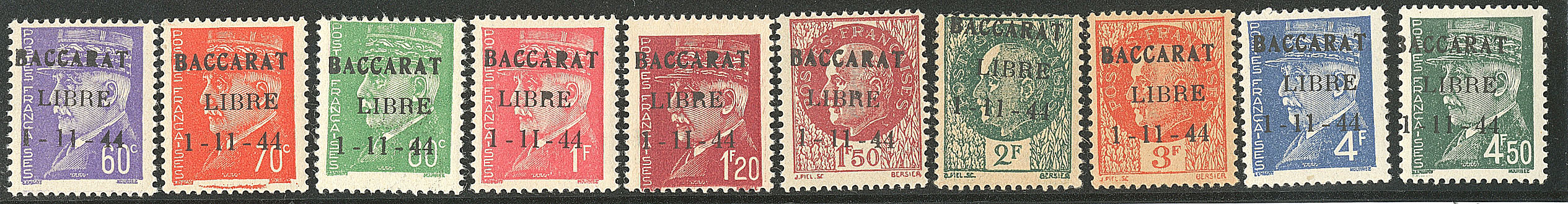 | ** | 1214 | LIBERATION. ** Baccarat. Type II. Nos 1 à 10. - TB (cote Mayer ) | 10 | 834€ | 120€ | vendu 143€ | |