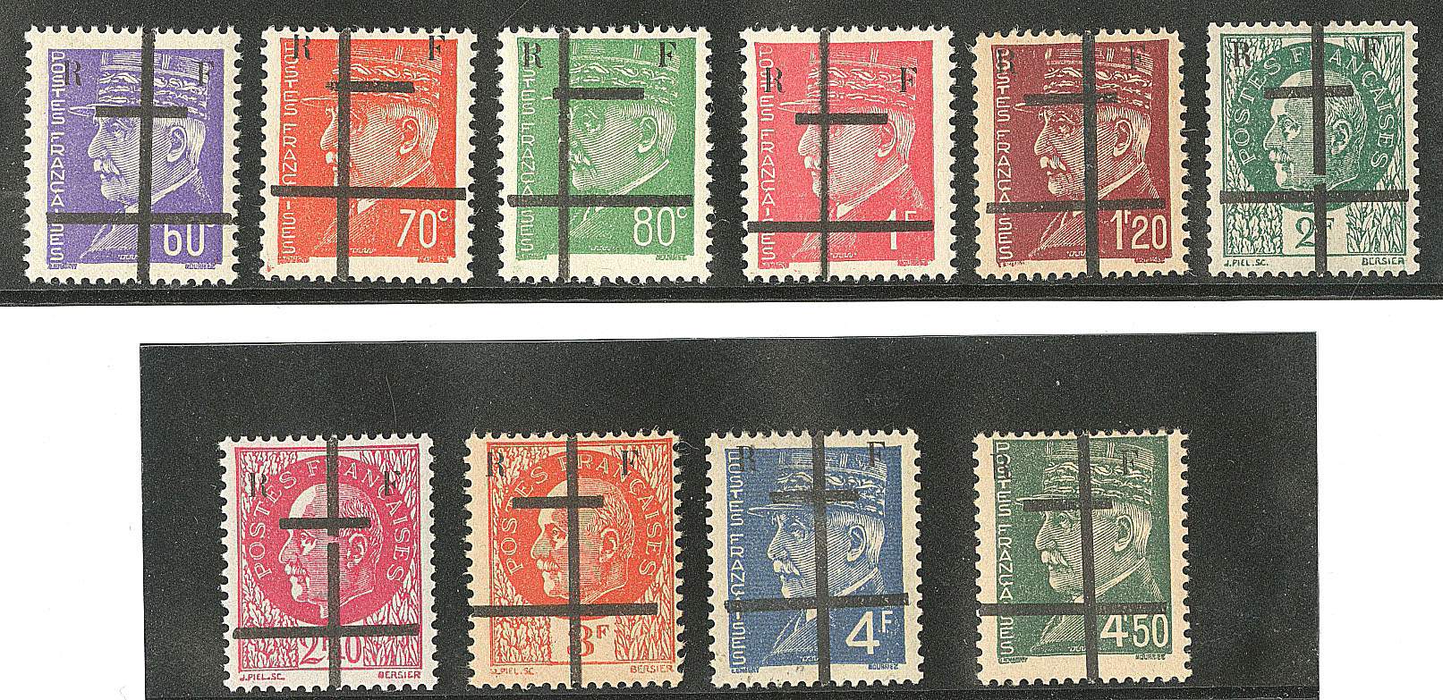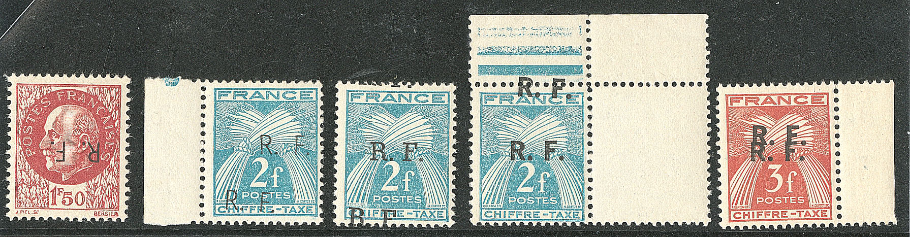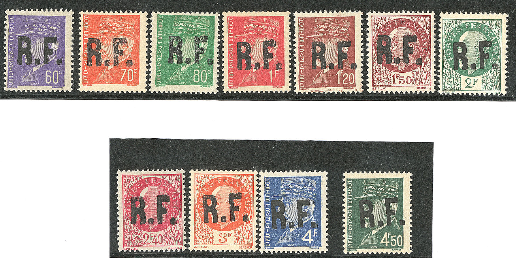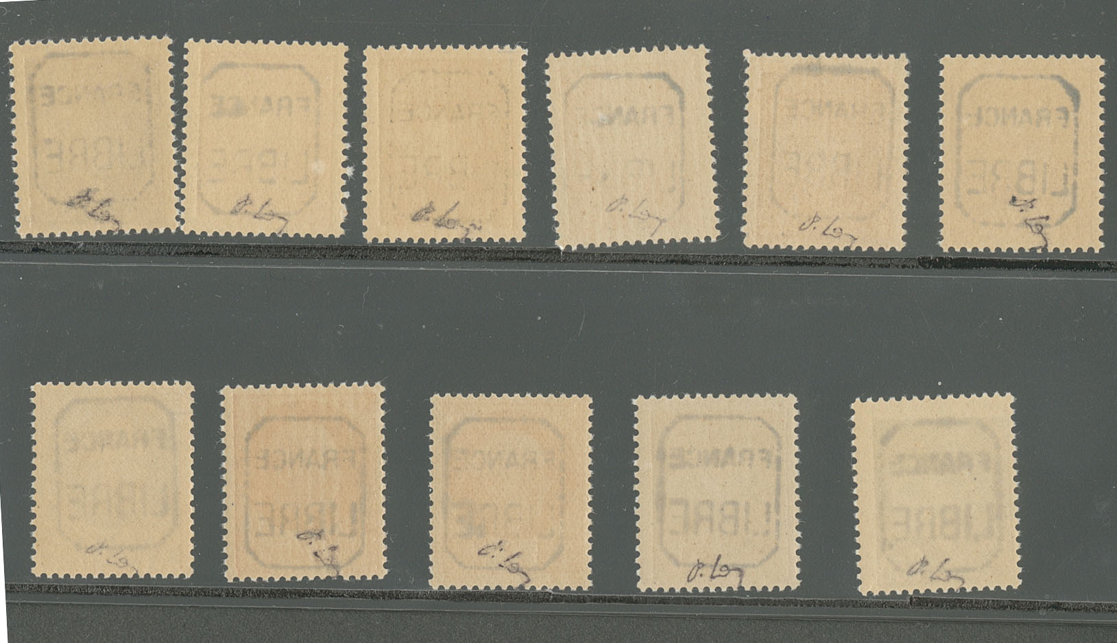 | ** | 1257 | LIBERATION. ** Decazeville. Surcharge renversée, type III. Nos 1 à 3, 4*, 5, 7, 9, 10. - TB (cote Mayer ) | 8 | 7200€ | 1200€ | - | |