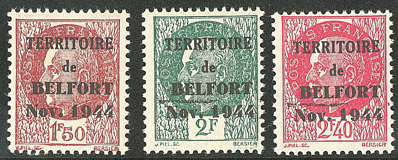 | ** | 1217 | LIBERATION. ** Belfort. Nos 1 à 3. - TB (cote Mayer ) | 3 | 2160€ | 400€ | vendu 430€ | |