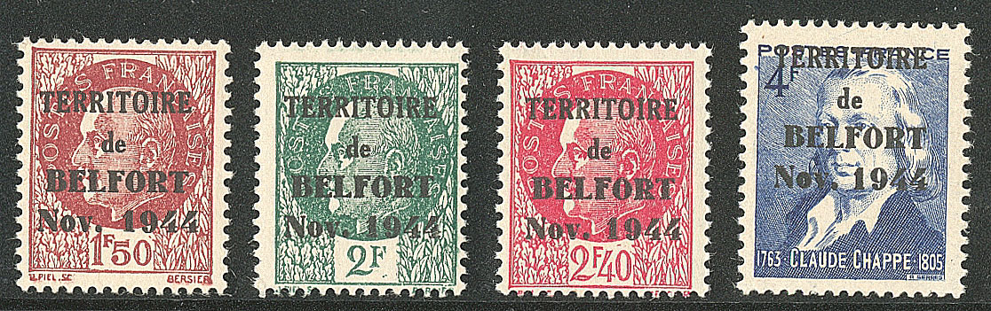 | * | 1218 | LIBERATION. * Belfort. Nos 1 à 4. - TB. - R (cote Mayer ) | 4 | 2800€ | 400€ | - | |