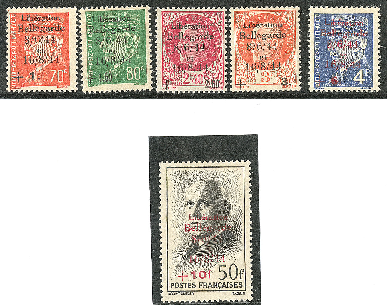 | ** | 1220 | LIBERATION. ** Bellegarde. Nos 1 à 6. - TB (cote Mayer ) | 6 | 618€ | 120€ | vendu 193€ | |