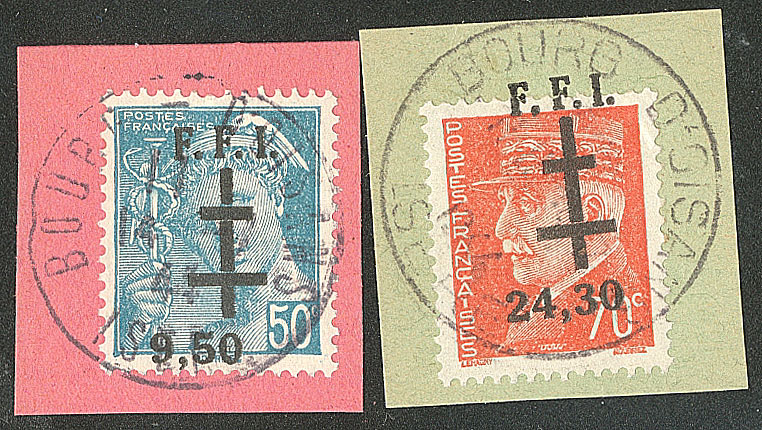 | 1227 | LIBERATION.Bourg d'Oisans. Nos 1, 2, sur 2 petits fragments. - TB (cote Mayer) | 2 | 340€ | 50€ | - | ||