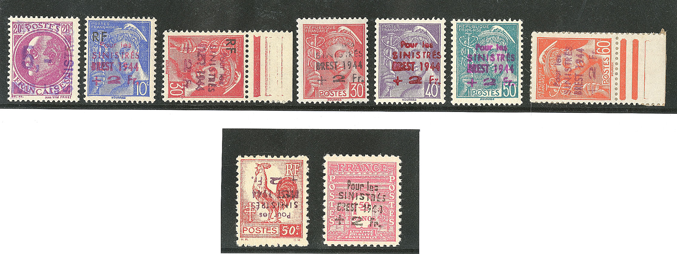| ** | 1230 | LIBERATION. ** Brest. Un ex 1re surcharge et 8 ex 2e surcharge. - TB (cote Mayer) | 9 | - | 200€ | vendu 315€ | |