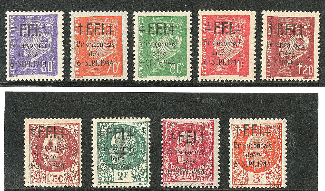 | ** | 1237 | LIBERATION. ** Briançon. Nos 1 à 9. - TB (cote Mayer ) | 9 | 450€ | 80€ | vendu 84€ | |