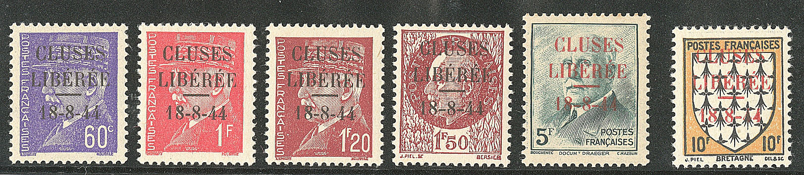 | ** | 1252 | LIBERATION. ** Cluses. Nos 1 à 6. - TB (cote Mayer ) | 6 | 612€ | 110€ | vendu 110€ | |