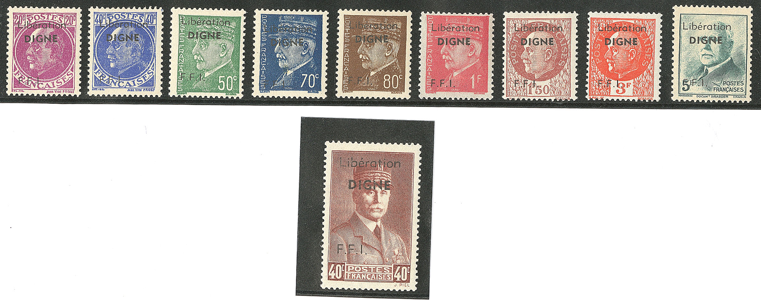| * | 1261 | LIBERATION. * Digne. Nos 1, 3, 4, 6 à 10, 12, 13. - TB (cote Mayer ) | 10 | 955€ | 150€ | - | |