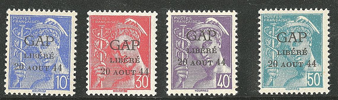 | ** | 1265 | LIBERATION. ** Gap. Nos 1 à 4, avec cachet de contrôle au verso. - TB (cote Mayer ) | 4 | 720€ | 130€ | - | |