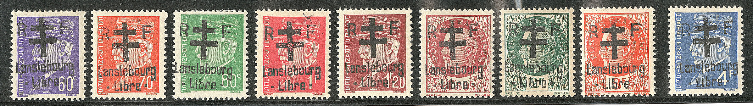 | * | 1267 | LIBERATION. * Lanslebourg. Nos 1 à 9. - TB (cote Mayer ) | 9 | 790€ | 120€ | vendu 120€ | |