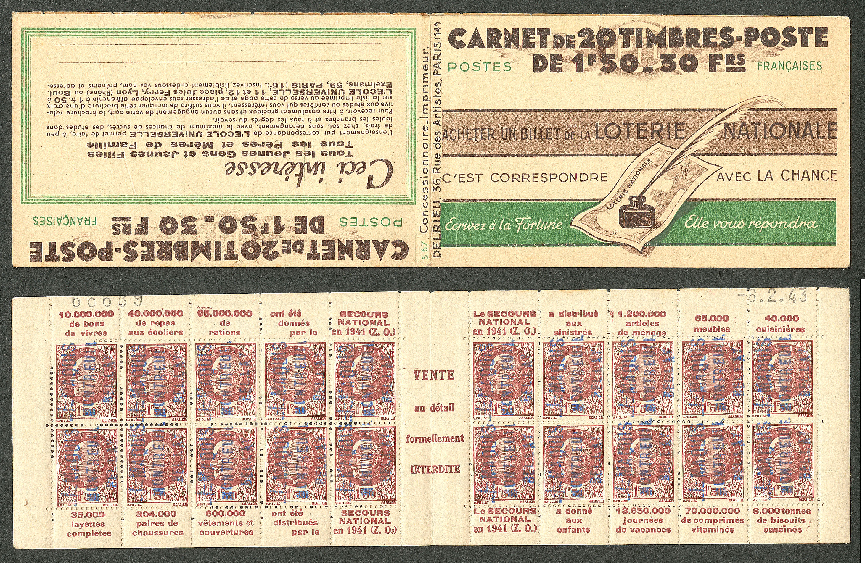 | ** | 1271 | LIBERATION. ** Montreuil Bellay. No 7C, carnet N°517-C2, S.67, avec griffe A au verso, N°et date 6.2.43 en haut, infimes adhérences en marge mais TB. - TB (cote Mayer ) | 1400€ | 150€ | vendu 150€ | ||