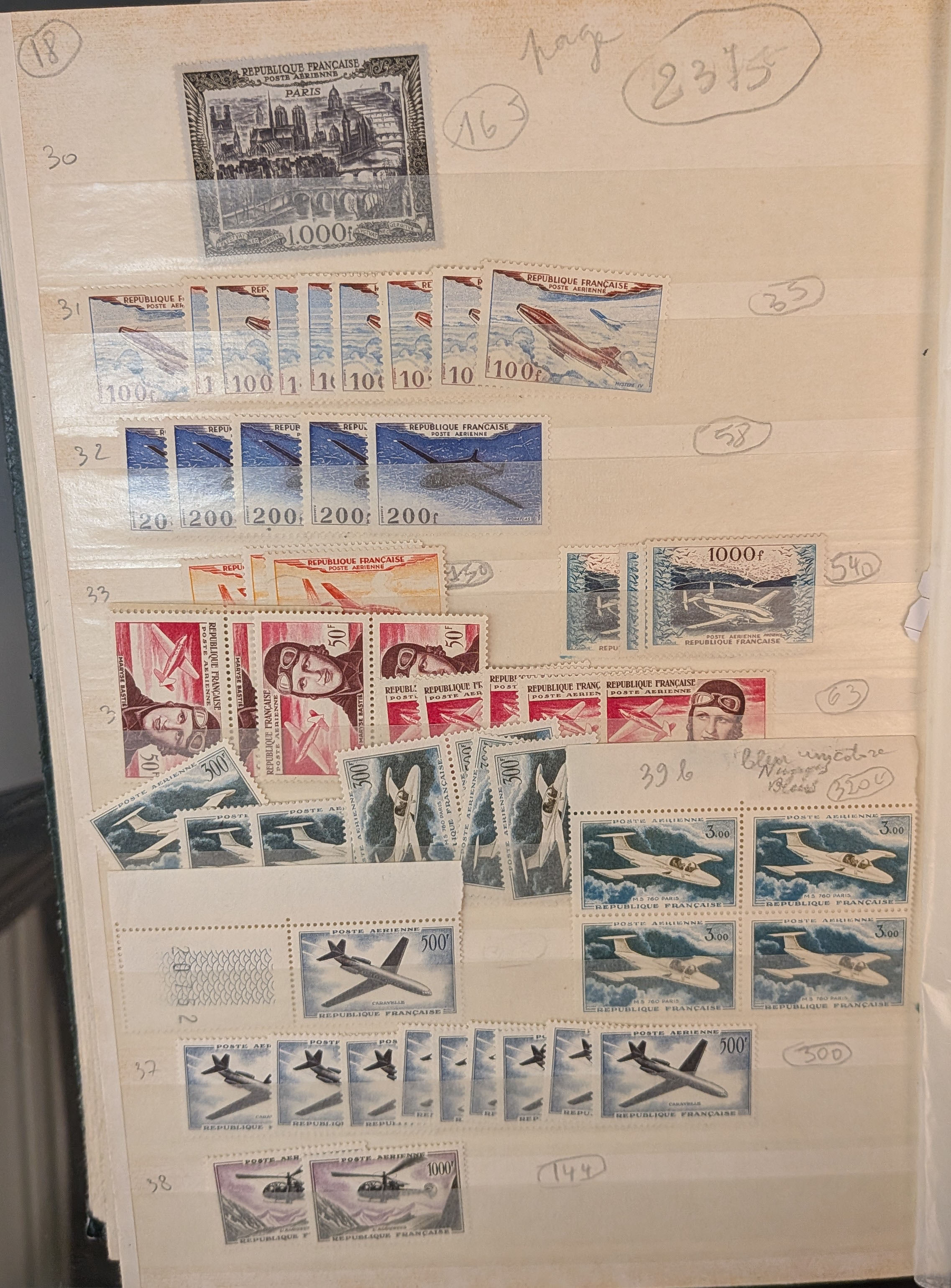 | * | 1447 | LOTS DE FRANCE. *Stock. 1900-1960 (Poste, PA, Taxe, etc.), valeurs moyennes et séries complètes par multiples dont ex obl et **, en 1 album. - TB, B ou pd (cote Yvert) | - | - | 1500€ | vendu 1500€ | |