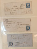 1409 | LOTS DE FRANCE. Lettre. 1852-1869, 215 plis ou fragments majorité affts 14 et 22, obl diverses + qqs ex détachés, en 3 albums. - TB ou B (cote Yvert) | - | - | 350€ | vendu 350€ | |